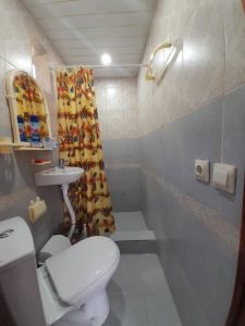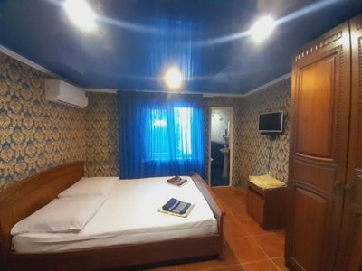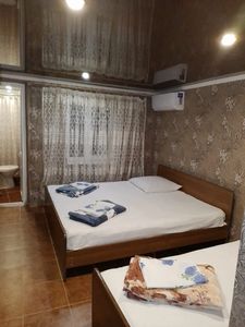 2-3-4-5 - местные номера, душ и туалет на всех этажах. На территории дома мангал, двор заполнен цветами и пальмами, рядом детский уголок с качелями и песочницей.